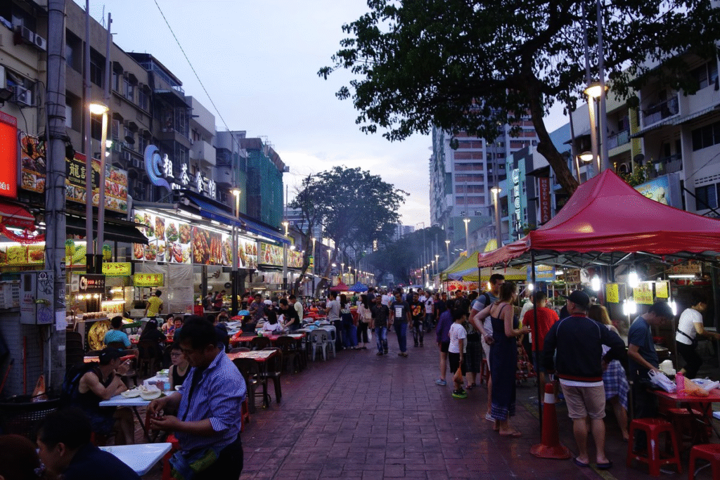 شارع الطعام الأشهر في كوالالمبور، ويقع على بُعد خطوات من شارع العرب. يقدم مأكولات ماليزية وآسيوية من屋كش الطهي المحلية. المكان يزدحم بالزوار ليلًا، ويعد فرصة مثالية لتذوق المطبخ الماليزي الشعبي.